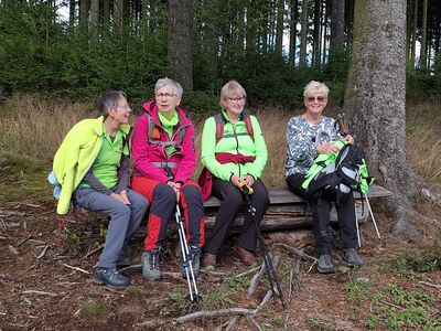 Auf Naturpfaden wanderten wir zum Allendorfer SGV Kreuz mit Hütte. Wir umrundeten den Denstenberg auf 560 m mit wunderbaren Aussichten. Über Blackshahnskopf erreichten wir den höchsten Punkt, die Waldeshöhe auf 580 m.
