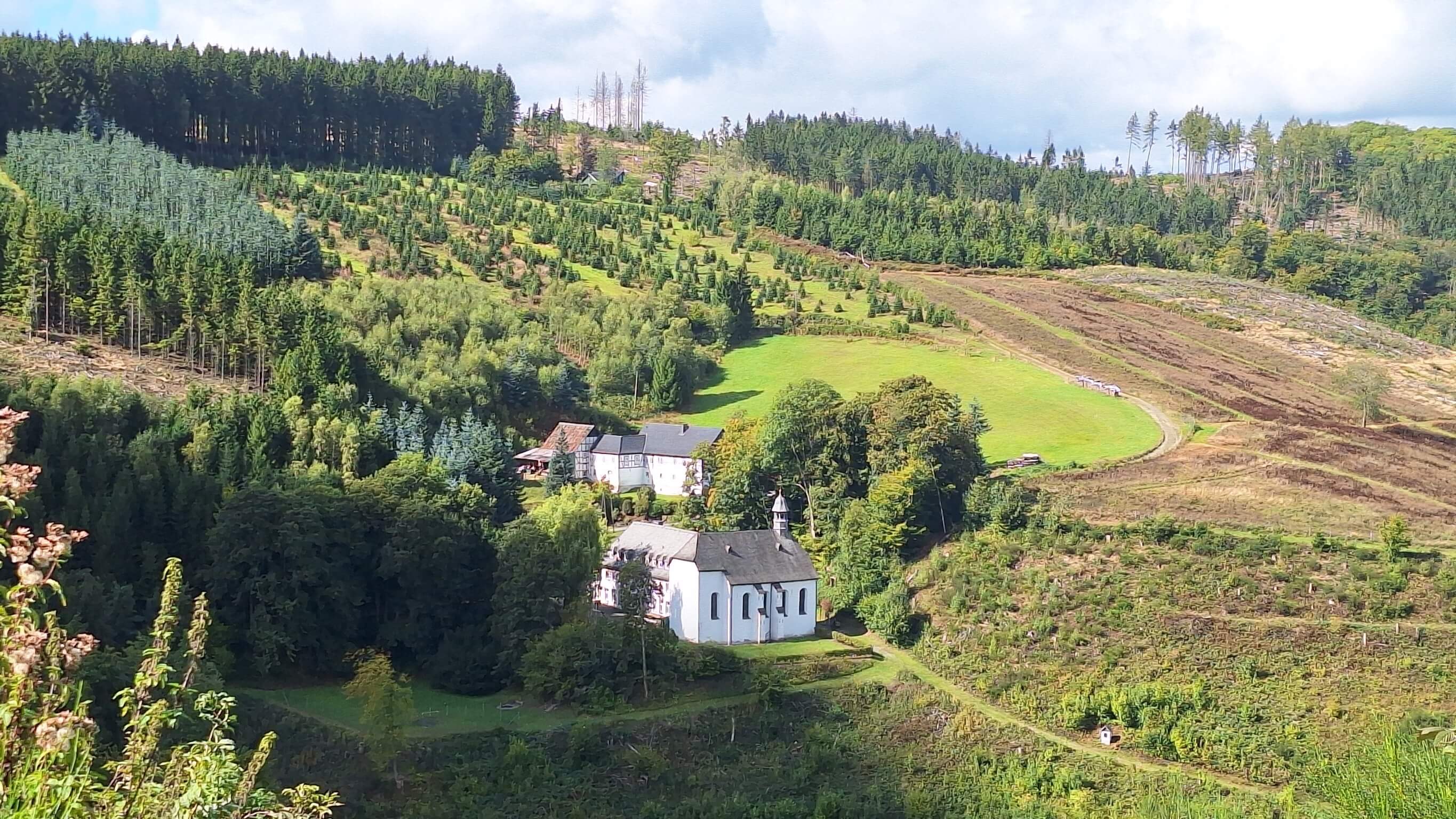 Am idyllisch gelegenen SGV-Wanderheim Wiehardt wurde eine Rast eingelegt. Gestärkt durch viele Leckereien aus den Wanderrucksäcken der Wanderer machte sich die Gruppe über Roland, Am Bergei, Wäsche und Ludemert mit einem Abstecher zur kleinen Kapelle am Distelnblech auf den Rückweg ins Tal. Die Wanderer waren begeistert von den sich immer wieder ergebenden Fernsichten und den vielen blühenden Wildblumen am Wegesrand.