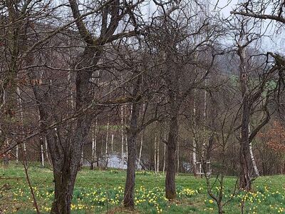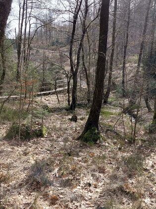 Von dort führt uns der Weg bergauf zum Hof Borghoff und weiter in Richtung Langenholthausen. Bergab durch ein kleines Waldstück gelangen wir zu den Fischteichen in Langenholthausen. Von dort wandern wir leicht ansteigend mit Blick auf Wiesen, Felder und Wälder in Richtung Benkamp.
